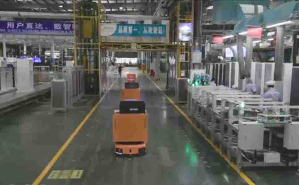为车载冰箱物流配送打造的智能解决方案,,,,包含产中物流通过潜伏举升AMR搬运至线边,,产后成品物流智能仓储,,流程包含产中物流智能齐套入库,,,线边安灯叫料AMR智能配送至线边,,成品入库、、出库,,通过无人堆高车机器人,,,,智能仓储管理替代人工作业管理,,,,实现更高存储、、更高效率、、更具柔性化的解决方案。。
